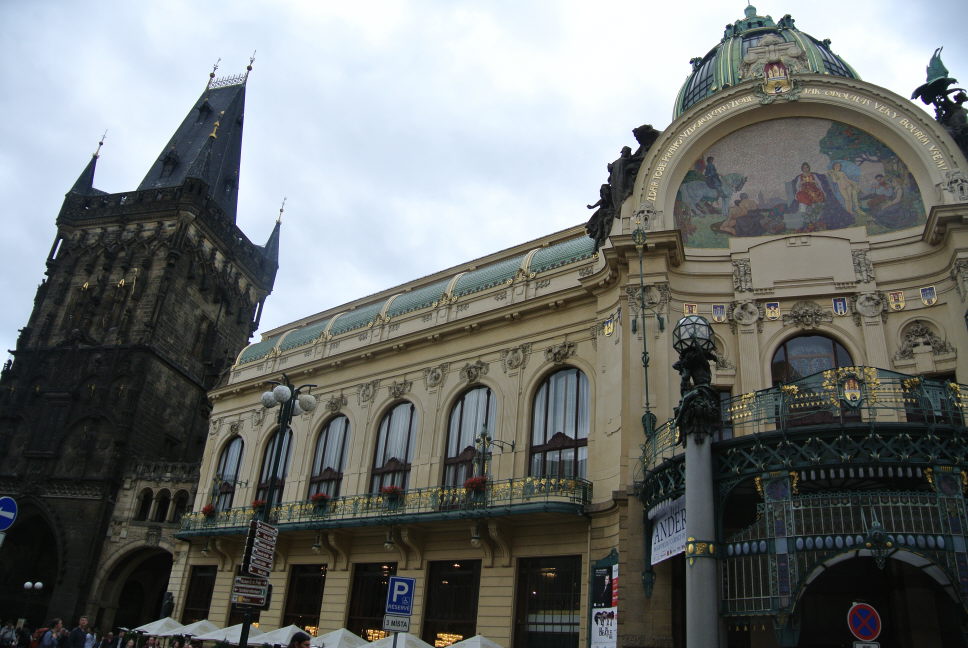 市民会館と火薬塔があるところで、この広場からたくさんの道路が出ていて、トラムや地下鉄も通り、空港バスの停留所もあるという交通の要衝で、大勢の人でごった返していましたが、広場そのものに何か特徴があるというわけではありません。でも、市場も開かれてとても賑やかでした。