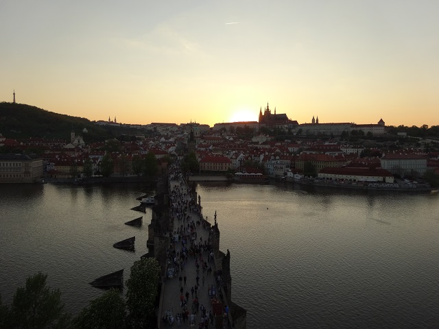カレル橋での夕景を見に行く人で溢れていたようです。