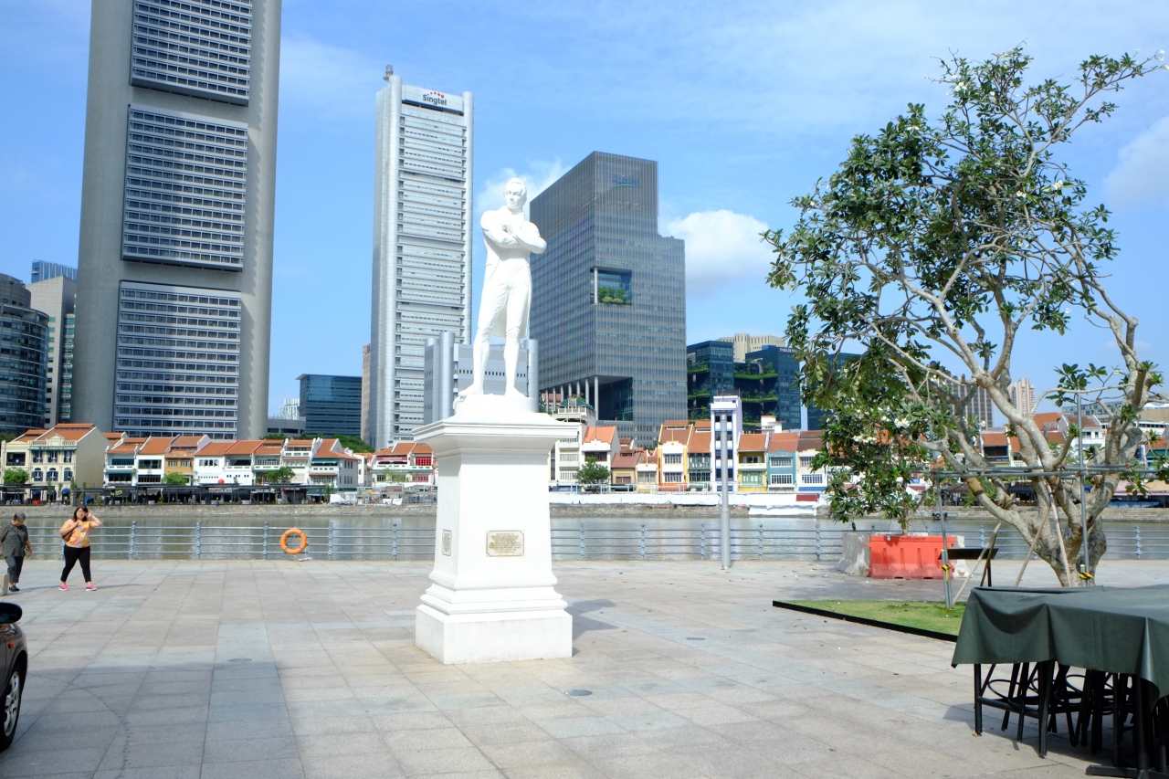 マーライオン公園から橋を渡ってすぐのところにありますが、あまり観光客はいませんでした。ガイドさんも、ここを訪れる観光客は少ないと言っていました。でも、ラッフルズ卿の白い像が川沿いに建っているので、リバークルーズの船からも見ることができます。ただし、後ろ姿ですが。
