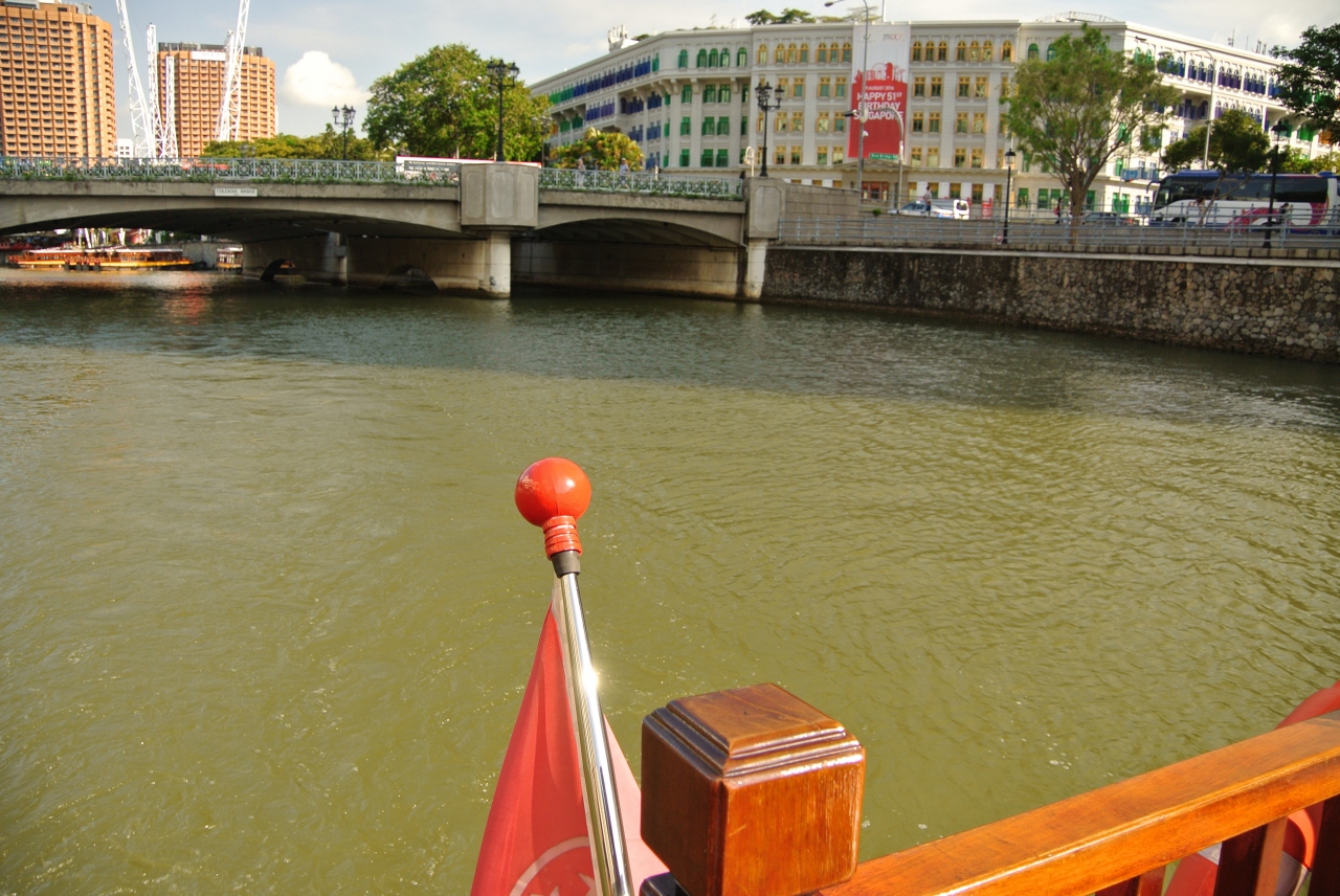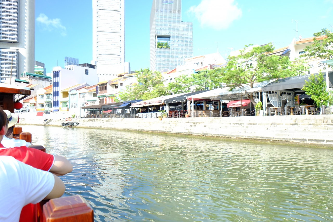 それほど大きな船ではありませんでしたが、屋根付きの席と、屋外の席がありました。暑いですが、それでも景色をよく見ようと思ったらやはり屋外の席がおすすめです。写真を撮るにもそのほうがいいですね。船から見るマーライオンは公園から見るライオンとは角度が違って真正面から見れるのがおもしろかったです。