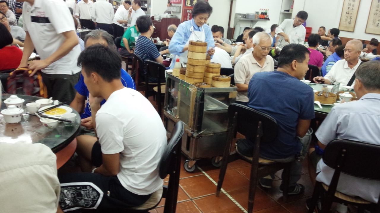 その後、白人のお姉さんが点心をどこからか持って来て、後ろを振り返るとワゴンに人が群がり点心をゲットしていた。入店後30分して、やっと点心にあり付く方法が理解出来、早速焼売らしきものを取ってきたが、これが美味しく無くて、食欲を失い、店を後にした。