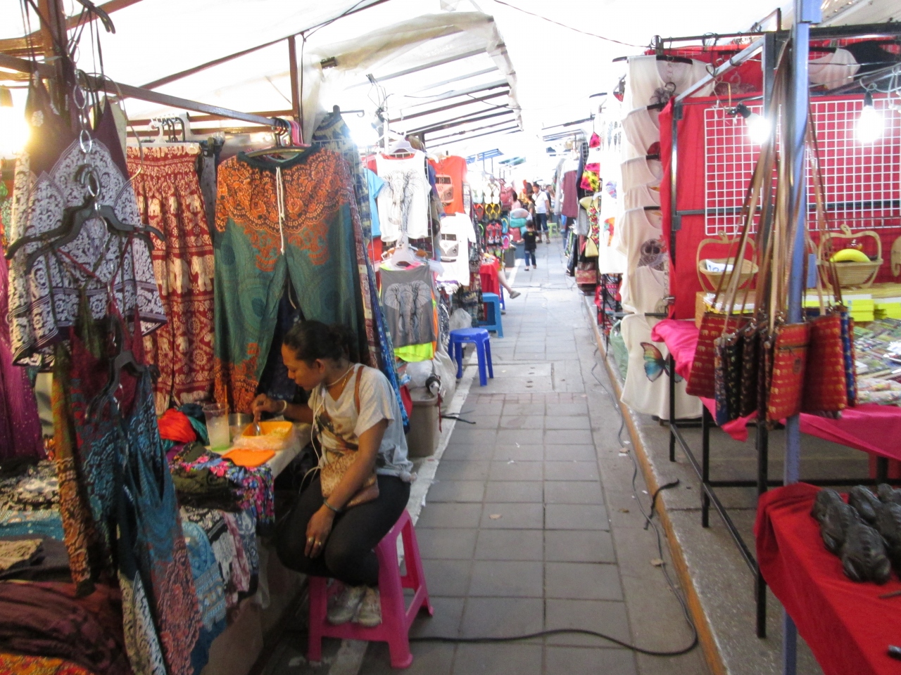 約三年ぶりに訪れたこのナイト・バザールは、チェンマイ市内中心部のチャン・クラン通り沿いで開催されています。伝統工芸品から食べ物、衣類などの約700の店が軒を並べています。ほとんどのお店が観光客向けでした。
