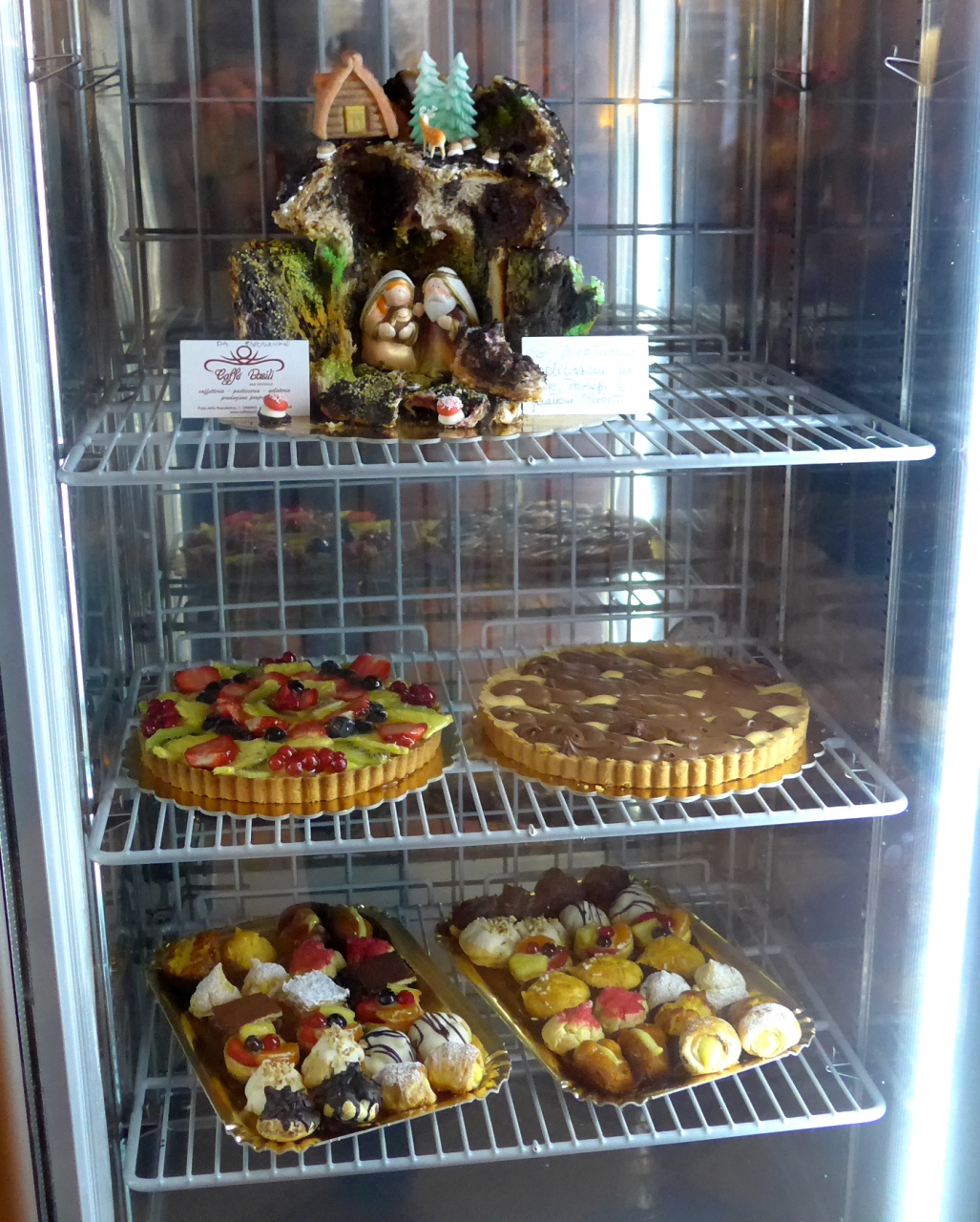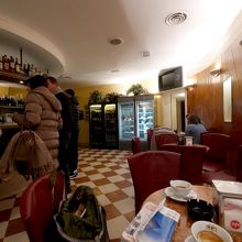 ウルビーノの中心地 Repubblica広場にあるカフェ Campariと大きく書いてあるのでそういう名前かと思ったら違うようだ.エスプレッソは割とおいしかった.イタリアではほとんどの店でカウンターに行き,お金を払って,そこでコーヒーをもらうシステム.ケーキがおいしそうな店.疲れたら休憩を