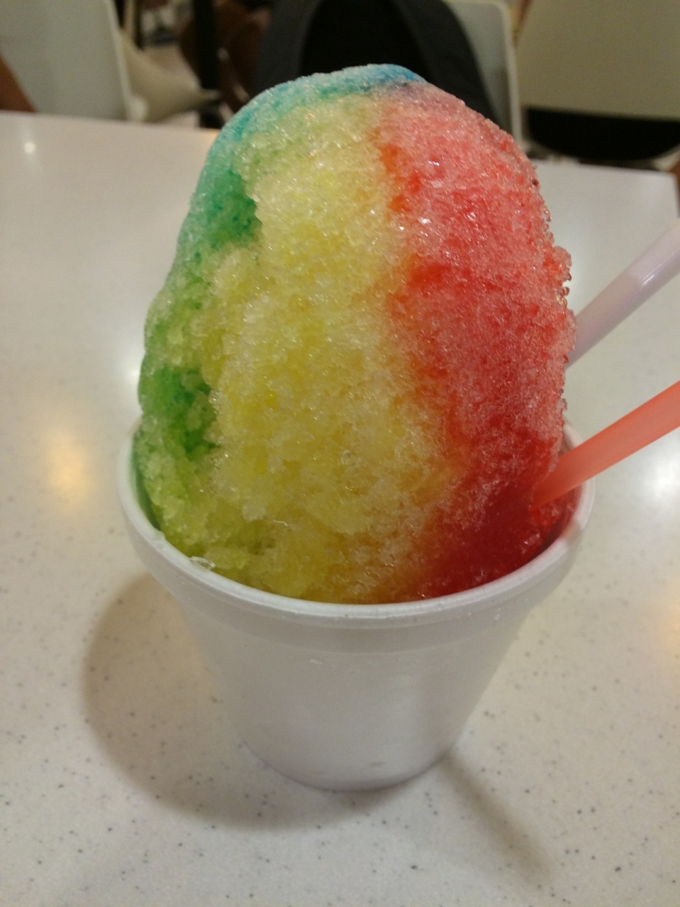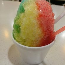 レインボーかき氷は、とってもインパクト大!ただ、味が混ざると美味しくないです。笑