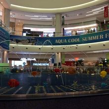 4階程の高さから流れ落ちてくれる噴水が、アルファベットを描いていたりまるでレーザー光線の様で見事でした。