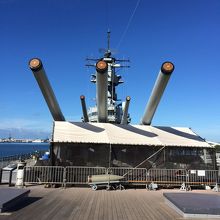 ハワイ、オアフ島のパールハーバーに停泊している戦艦ミズーリ。現在は、記念館として公開されていますが、1994年の湾岸戦争まで現役で活躍していた戦艦です。