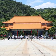 猛暑の中だったので、入り口の門の下あたりで見ていました。
