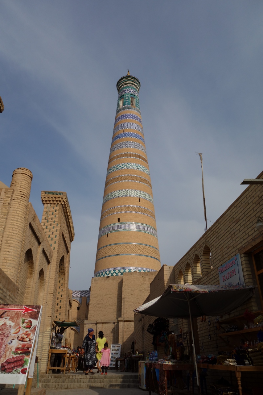 イスラーム・ホジャ・メドレセについてはあまりよく覚えていませんが、すぐ隣にあるミナレットはヒヴァで一番高いミナレットなので登る価値があるともいます。共通入場券とは別料金になります。上からの景色は素晴らしいですが、中は狭く、急で、暗いので足腰が弱い人は無理しないほうが良いかと思います(もう少しゆるい別のミナレットに登ってみればいいと思います。)。