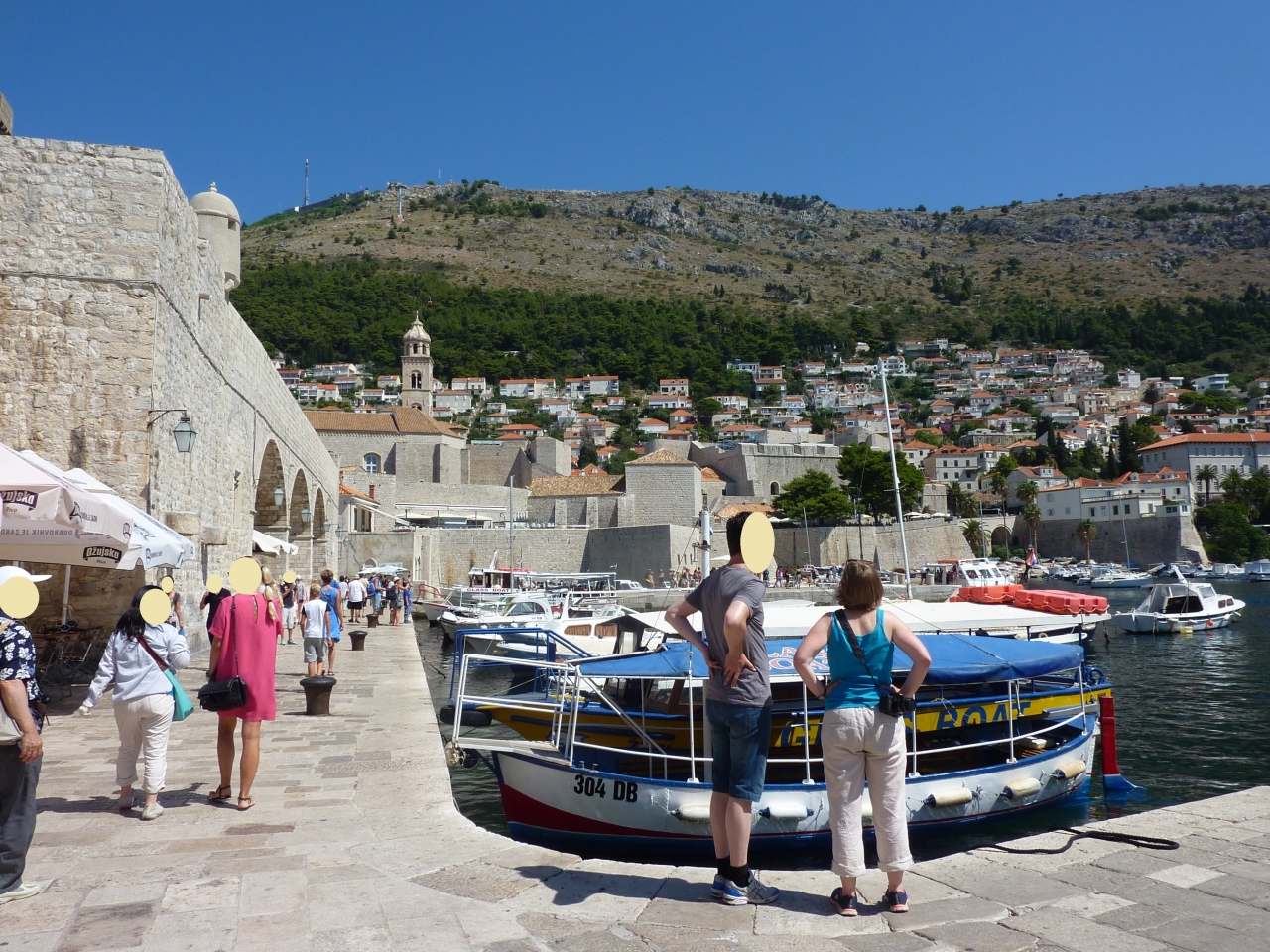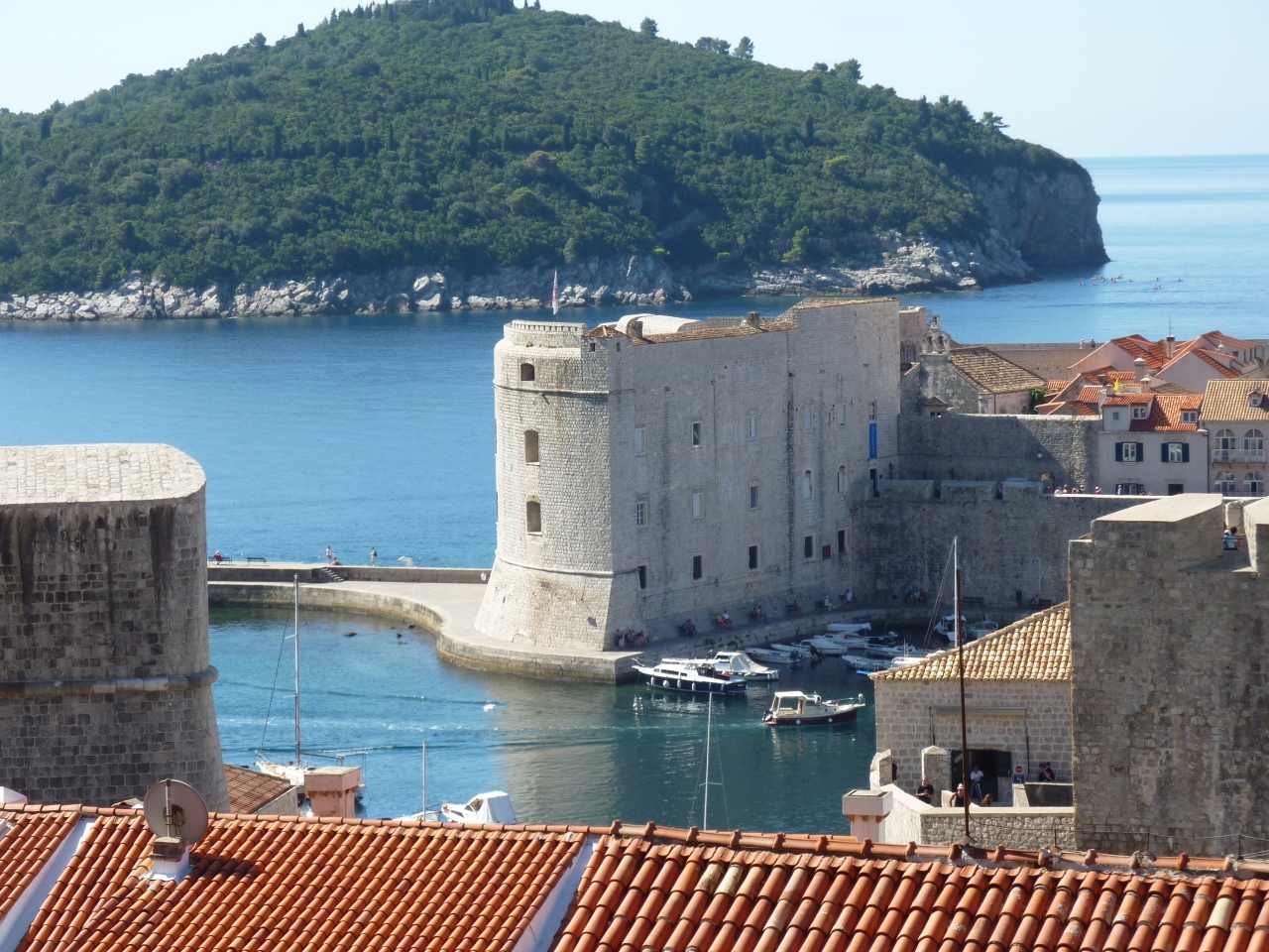 ドブロヴニクで最も古い歴史のある場所です。かつてはこの港に世界各国を結ぶ交易船が集まり、街の繁栄を支えていました。現在は大形船舶は新市街西側の港に停泊するため、ここはロクルム島や近隣の島に渡る観光船の発着所になっていて、小型船舶が沢山係留されています。旧港沿いの道を歩くと観光船の呼び込みがすごいのと、日差しを遮るものがなく、海の照り返しがあって暑さが倍増するので早々に切り上げました。