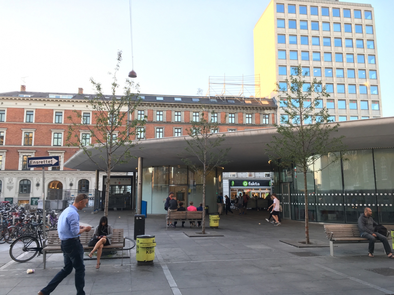 国鉄、地下鉄、近郊列車、バスの乗換駅。出入り口のデザインは庇が有機的な形で面白い。構内にはお店などはないが、駅を出てすぐ目の前に高級スーパーが有り、便利。近くには市場Torvehallerneもあるので、昼間に乗り換えついでにランチにも便利。