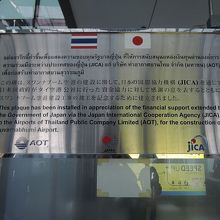 日本政府がJICAを通じてタイ空港公社に資金援助を行い、感謝の意と空港の竣工を記念するために作られた碑があることを、初めてこのときに知りました。見返りは利子だったのかは知りませんが、作られたわりにはその恩恵を受けている外国人は中国人のような気もする空港でした。