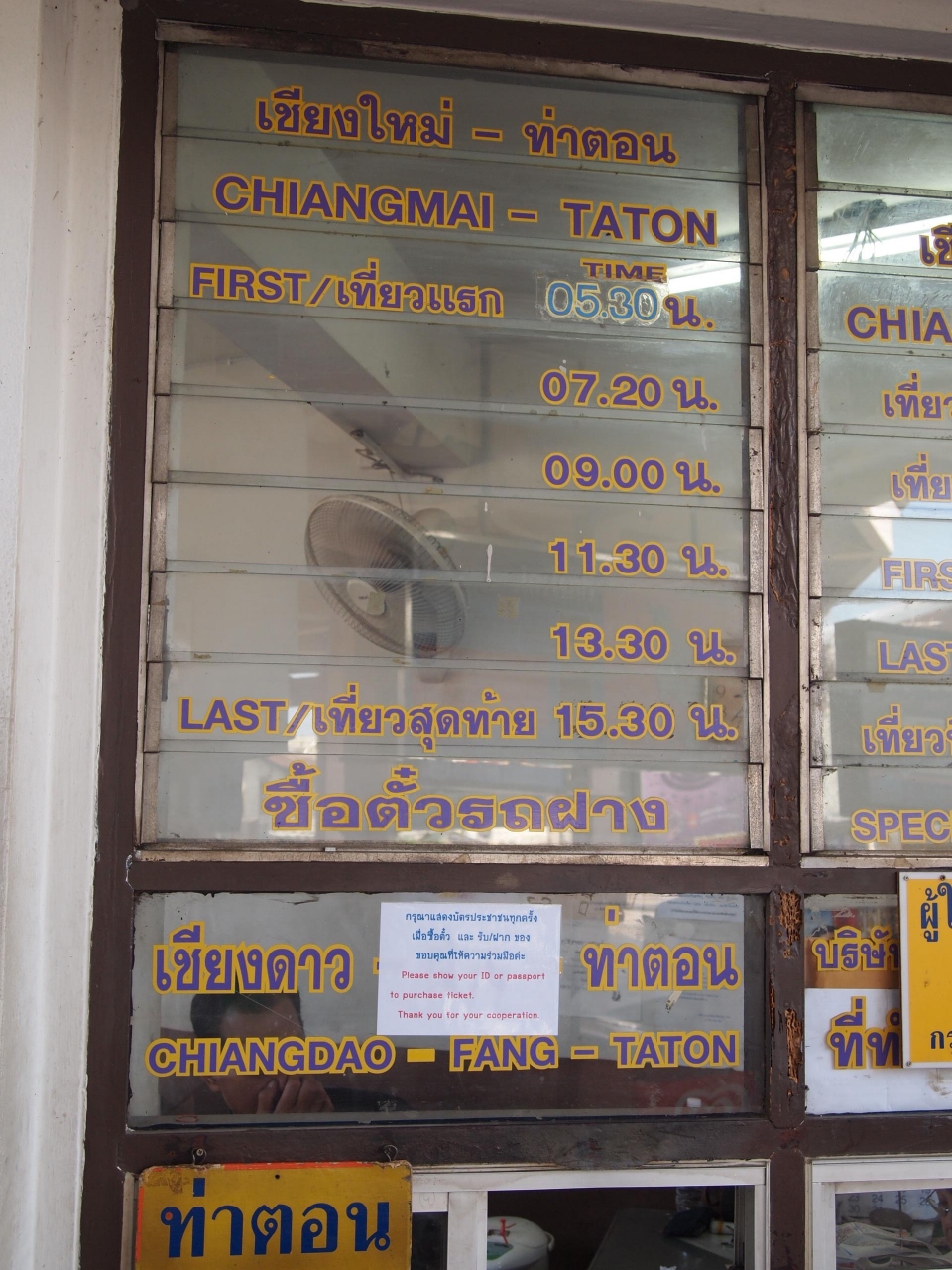 チェンマイから北部のタートーンへの移動で利用しました。場所は、チャーンプアク門から歩いて10分弱です。