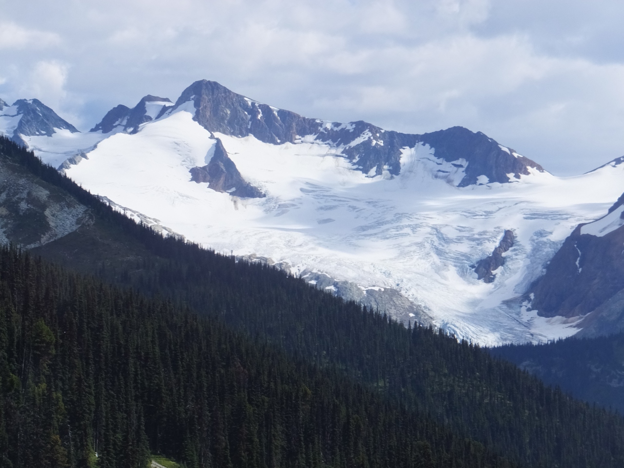 カナディアンロッキーの山々や氷河を眺めながら足元に深い渓谷・・・