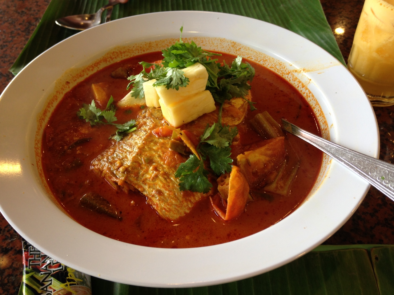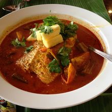 写真の魚の上に乗っているのはポテトかと思ったらパイナップルでした。皿が大きくSサイズでも4人分くらいはありそうでした。あとから入ってきた女性2人組の客がカレー2皿を頼んでいたらお店の人が2人でSサイズ1皿で十分ですと言っていました。