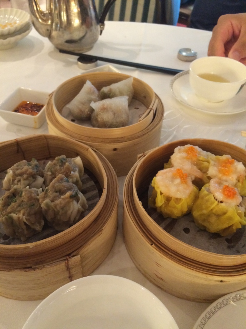 定番が一通り揃うとガイドブックでうたわれていたので旺角駅にあるこちらに行ってみました。朝の9時ごろだったので、隣接するショッピングセンターが閉まっていて通行止になっているところが多々あり、かなり迷いました。到着した頃にはお店の周りに人だかりがありました。こちらのお店は機械に人数を打ち込み、番号を発券して順番待ちをするシステムでした。10分ほど待って席に通されました。かなり大きなお店です。1人で来ている方も多々いました。チェーン店のようですが、日本語はおろか、英語も通じません。しばらくポカーンとしていましたが、他の人たちを見よう見まねで何とか食事にありつけました。旅行客相手というよりは現地の方が利用するお店なんだなと思いました。朝はメニューが限 られているようで、メニューを見ていたら店員さんが朝のメニューを教えてくれました。ワゴンでは焼売やお粥や揚げ物が回っています。店員さんを呼び止めて、欲しいものを伝えて取ってもらい、ハンコをもらいます。海老餃子や腸粉は個別に頼むようでした。ワゴンには何が乗っているかが書かれていますがよく分からないので見せてもらってオーダーしました。初心者には難しかったですが、地元の方に人気のお店っぽかったので本場の味を体験できたんじゃないかなと思いました。