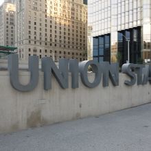 駅の外にUNION STATIONという大きなロゴのモニュメントがあり、印象的でした。