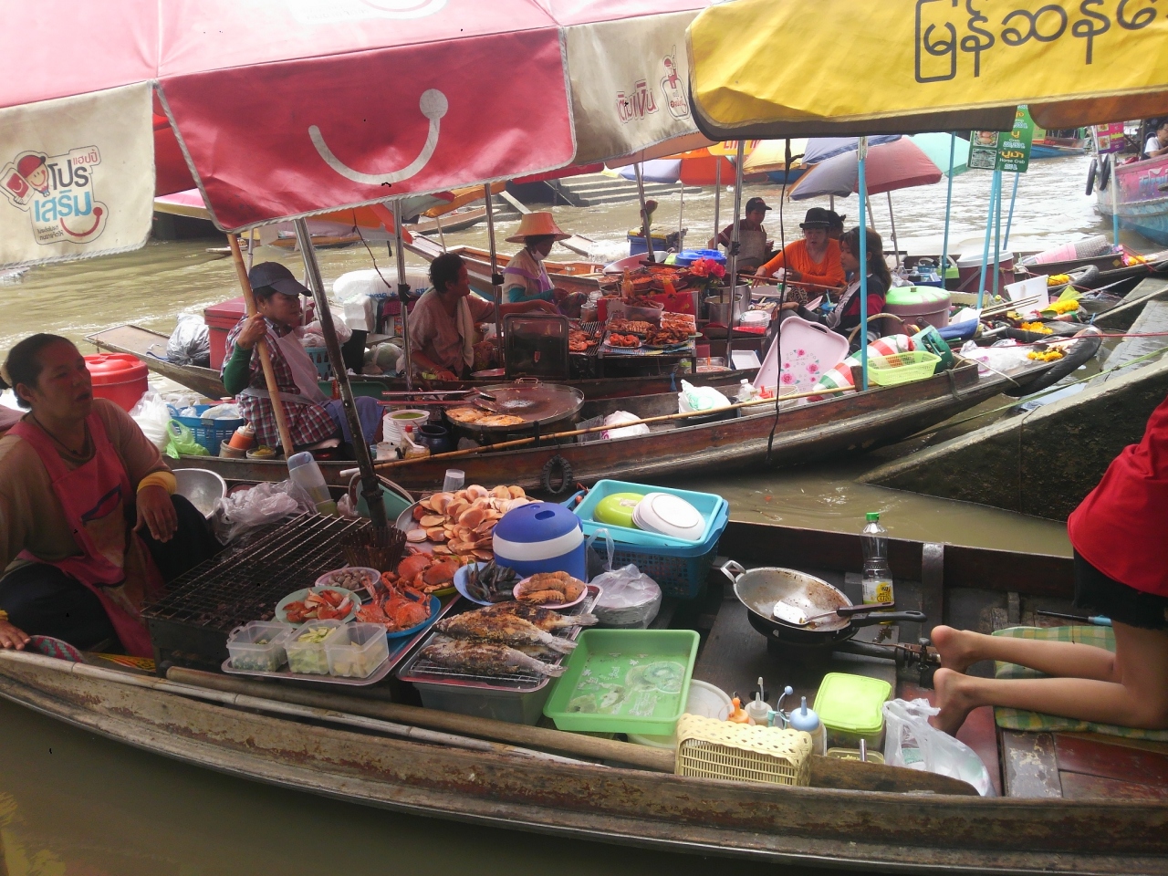 ここは比較的外国人観光客の姿も少なく、お土産物や食べ物も安いです。食堂で飲んだ缶ビールはバンコクのスーパーより安かったです。