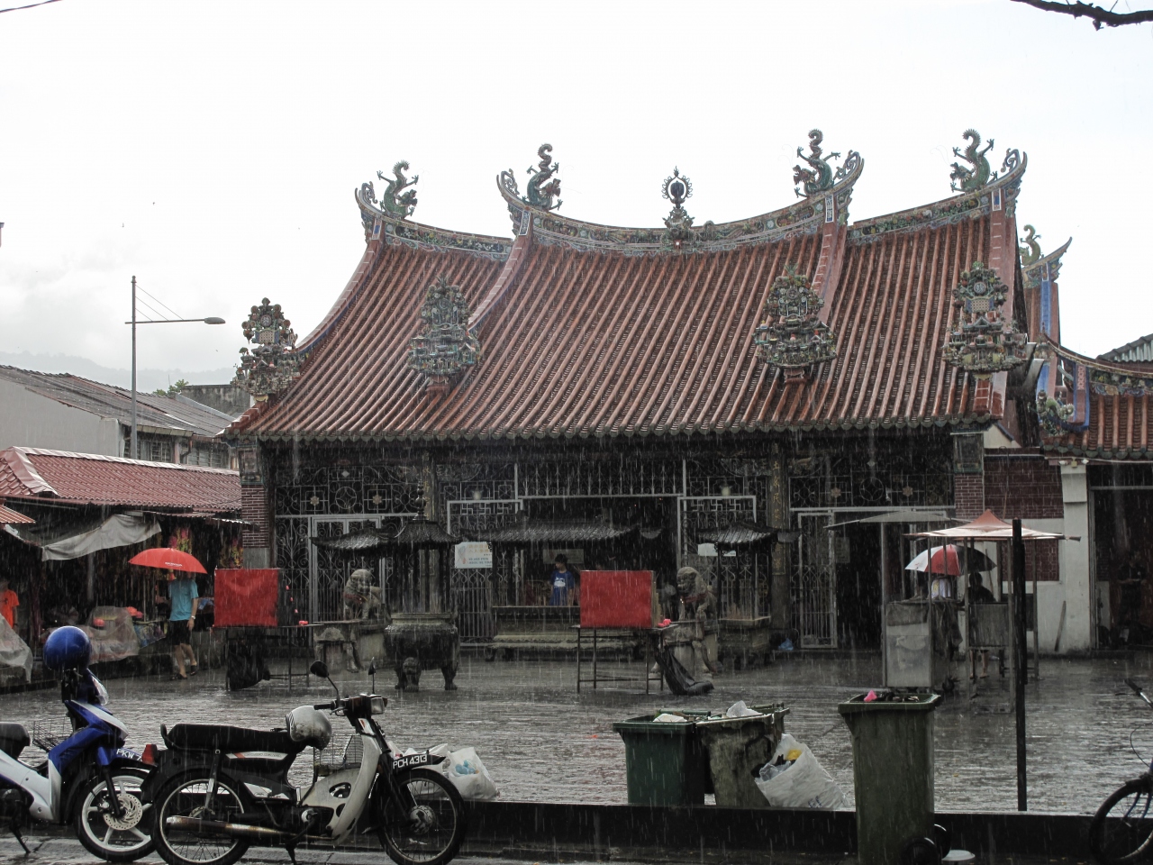 中国系ペナン市民の信仰の中心となる観音寺とプラナカンの建物。
