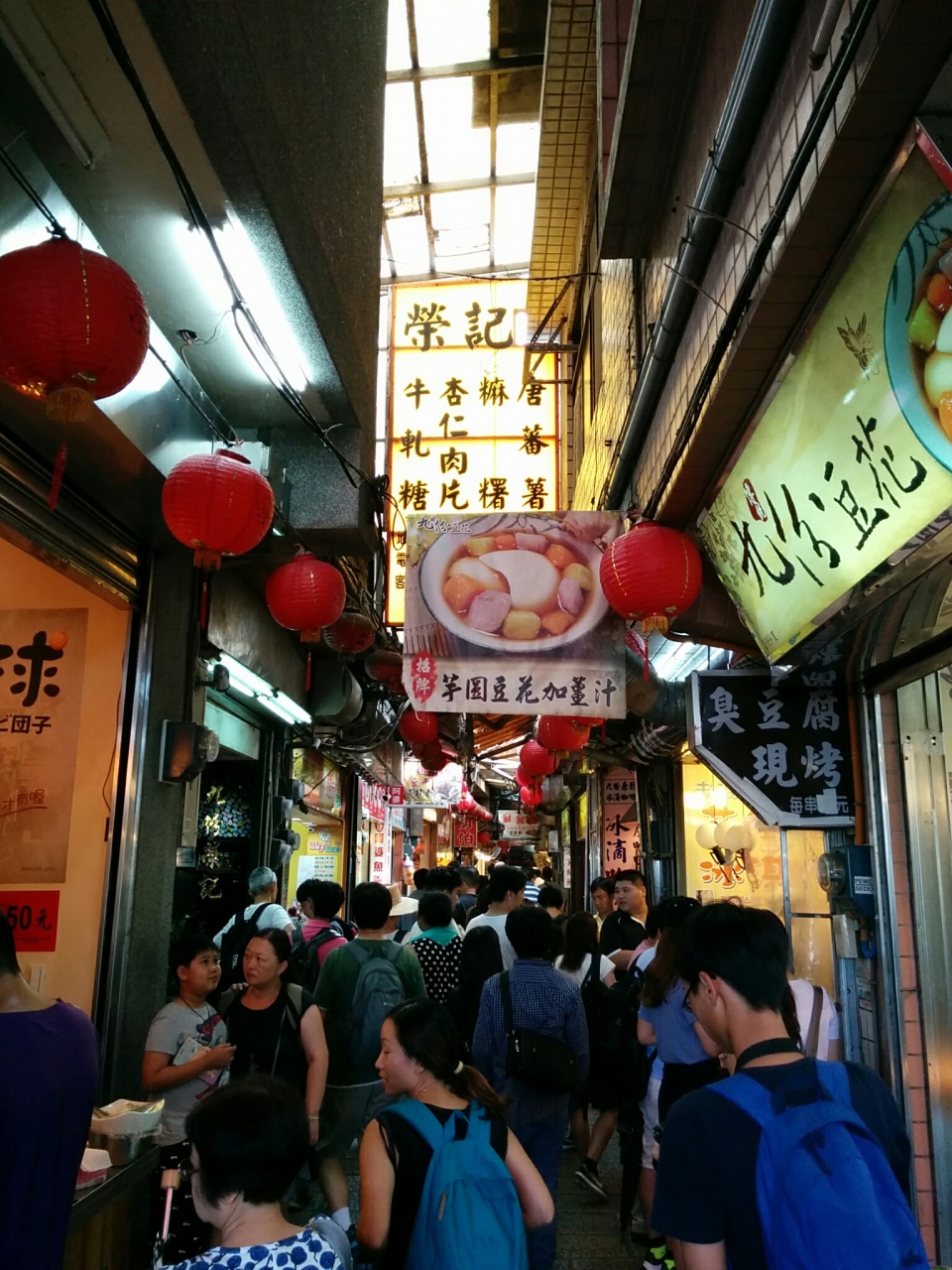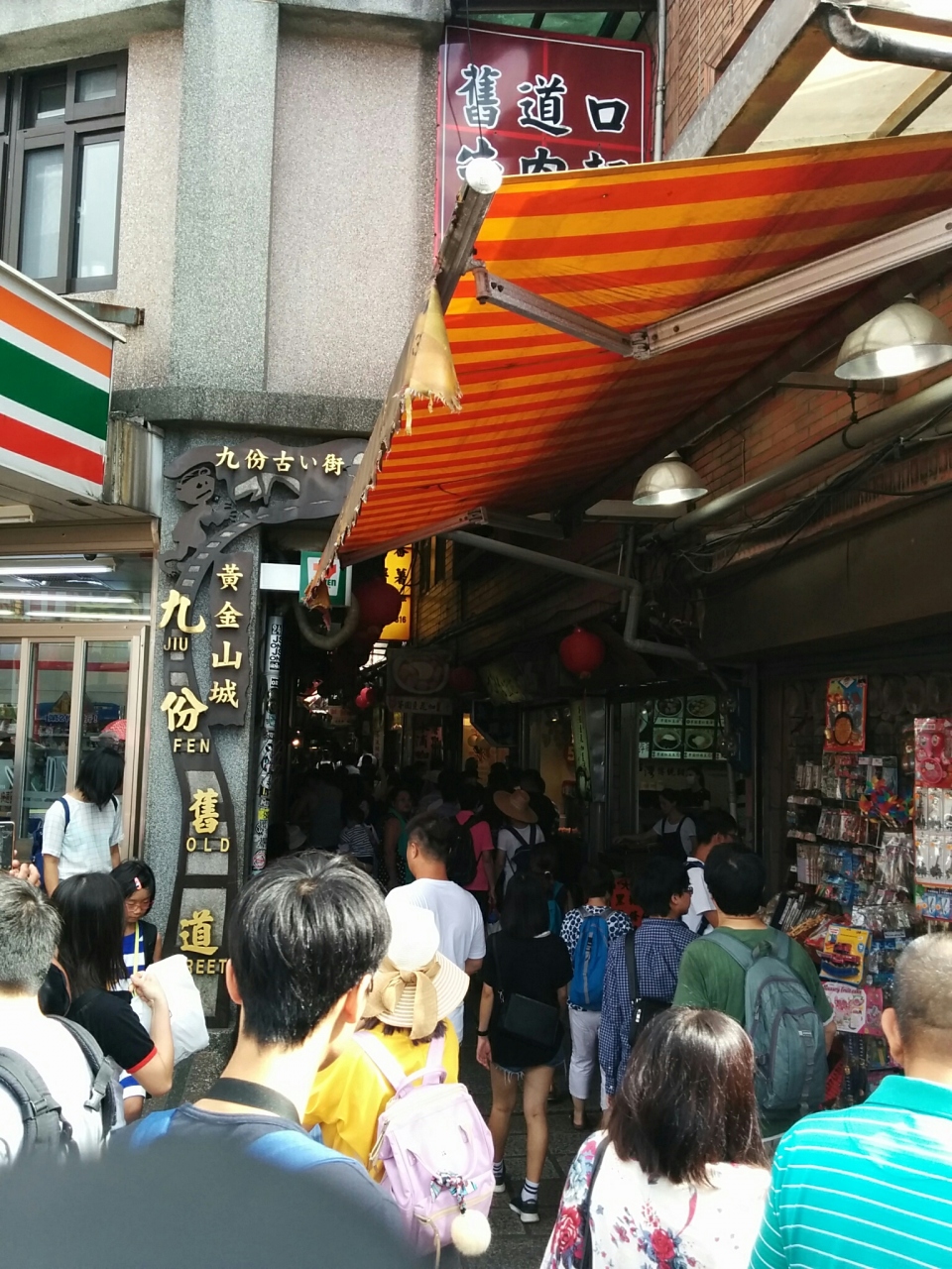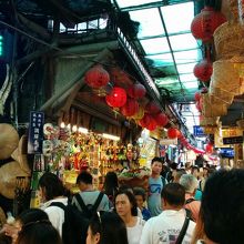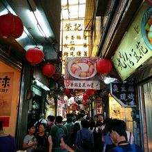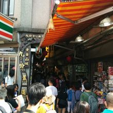 ここから西へおよそ600m程、食べ物屋さんやお土産屋さんがところ狭しと続いてます。人込みもすごいのでのんびりという訳に行きませんが、レトロな雰囲気をたっぷり味わえます。途中で有名な「豎崎路」(南北に走る、赤ちょうちんで飾られた、まさに九份という雰囲気)を横切ります。
