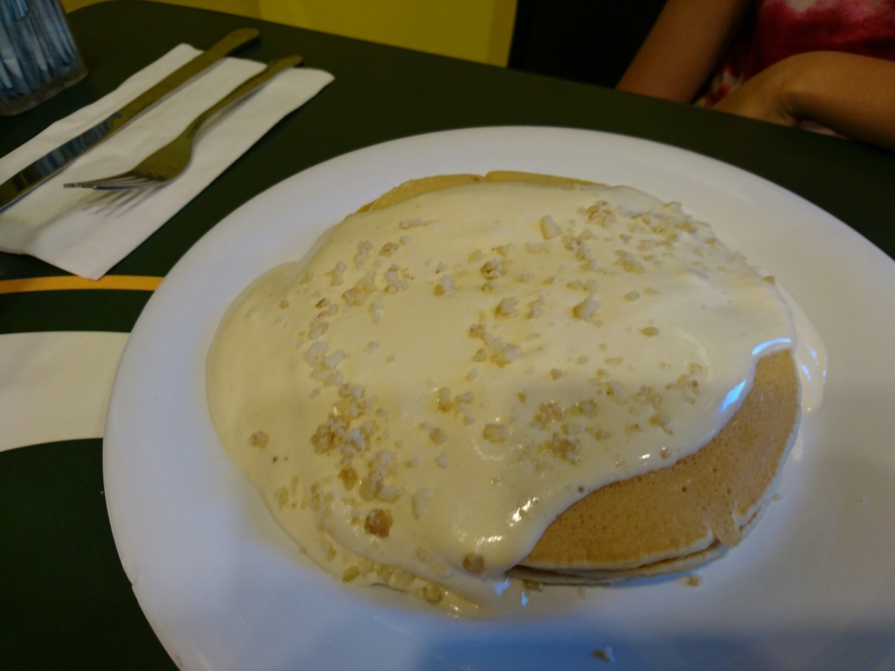 お客さんは日本人だけのように見えました。パンケーキは濃厚そうに見えてあっさり。家族に一番好評だったのが100%フレッシュジュースでした。普通においしかったですが次回は近隣の他のパンケーキに行ってみようと思っています。