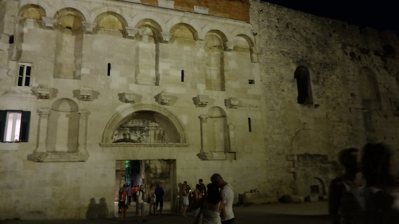 スプリット、ディオクレティアヌス宮殿を囲む城壁の北側の入り口が「金の門」です。建設当時は金の装飾が施されていたそうですが、今は残っていません。門自体より、金の門を出て公園へ進む途中に、巨大な銅像で「グルグールの像」があるので、是非見に行ってください。