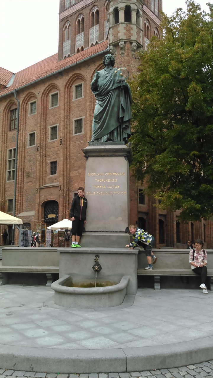 ツアーで訪問しました。広場で手に地球儀を持って立っているので、すぐそれと分かります。そばで見たり、写真を撮ったりしただけです。コペルニクスの生家は、道路が高くなったので、半地下状態になって博物館となっています。
