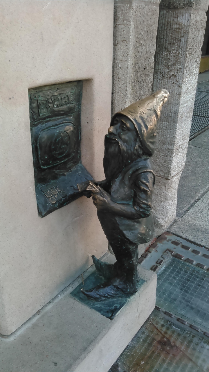 ツアーで訪問しました。広場にも、町のあちこちにも、小人が沢山。もともとは社会主義時代に学生運動のシンボルだったそうです。200体以上あり、年々増えているそうです。銀行前にはATMを使う人、消防署の前には消防士など、場所を表していて、それも面白く、かわいいです。