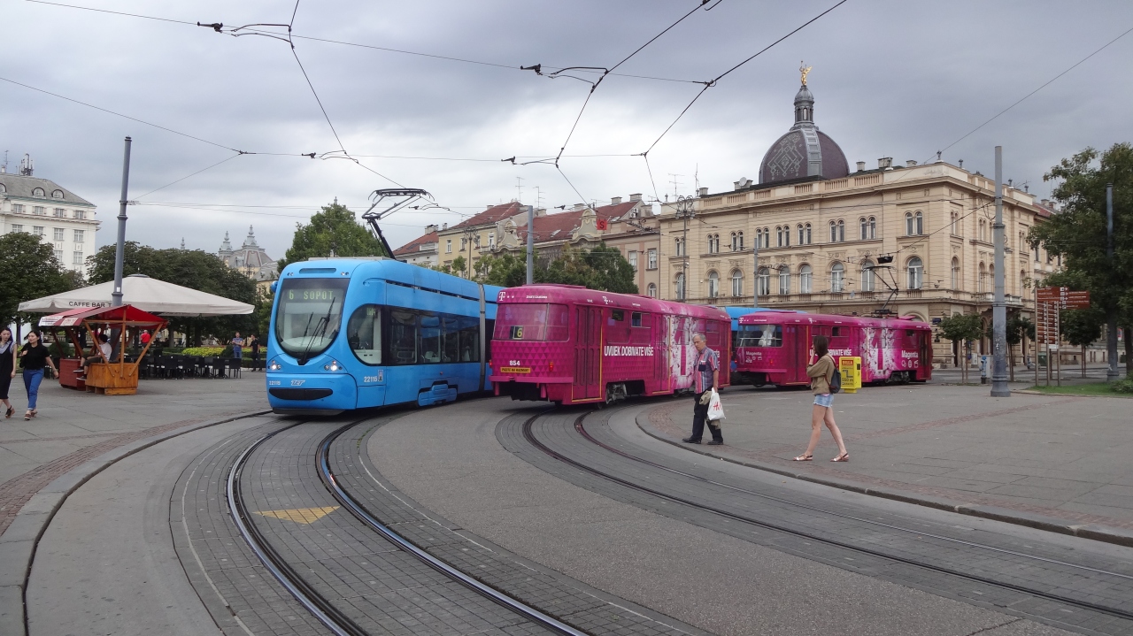 ザグレブ中央駅前から中央バスターミナル間で利用しました。6番のトラムで2駅でした。約5分。トラムのチケットは10クーナ。車内で運転手さんから直接購入しました。中央駅からイェラチッチ広場までは、6番のトラムで5駅です。何駅乗っても同一料金というシステムで、打刻してから90分間有効。一方方向に限り他のトラムやバスに乗継可能です。