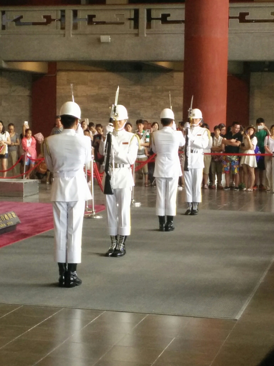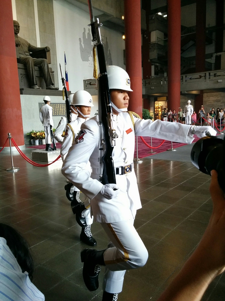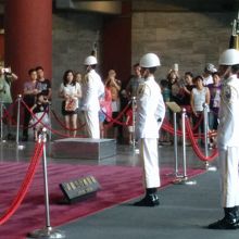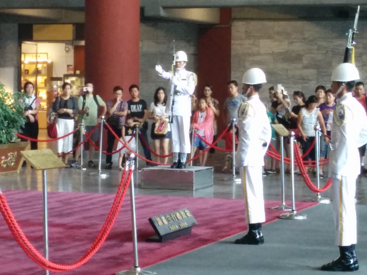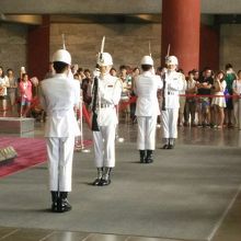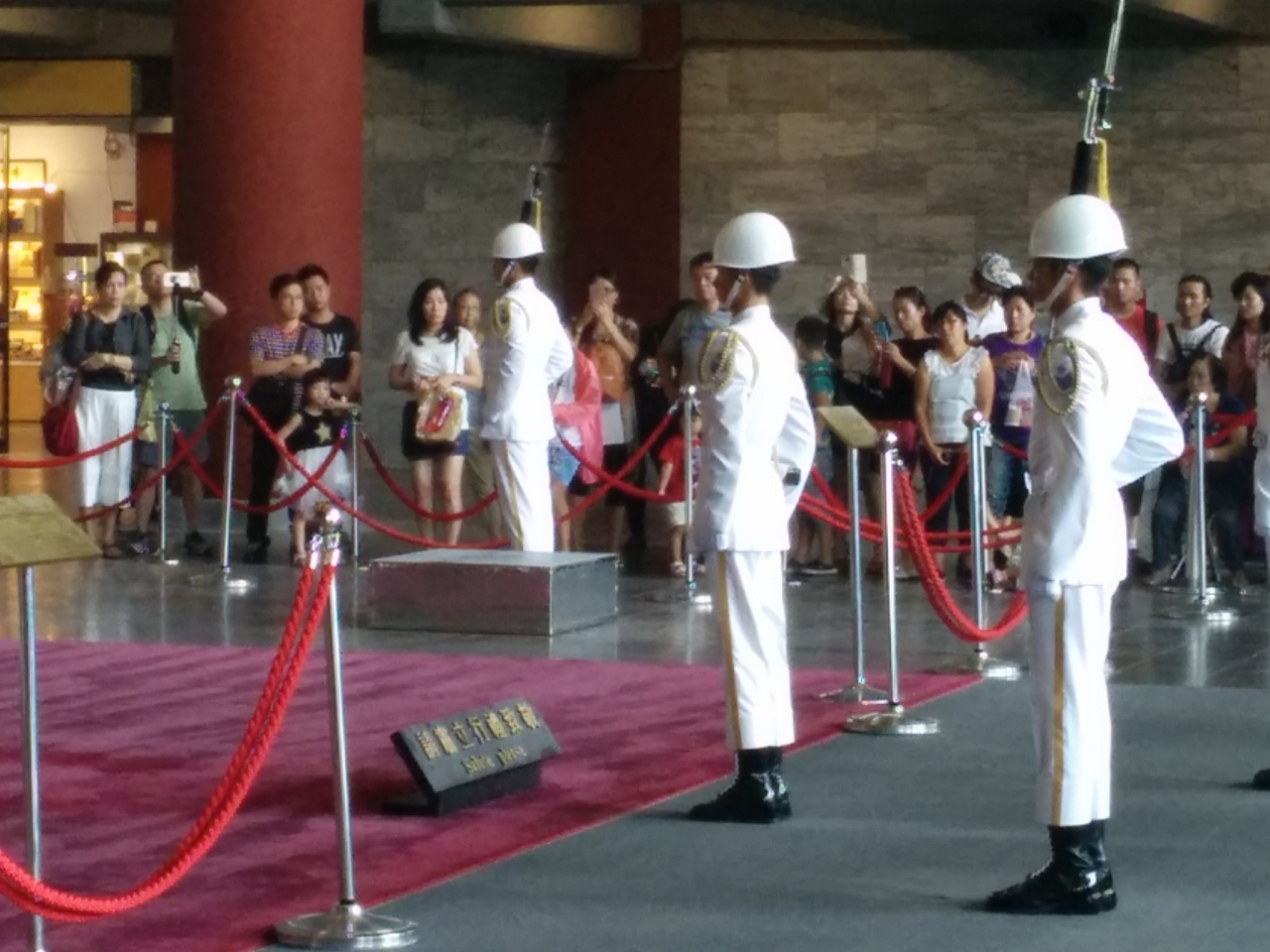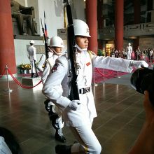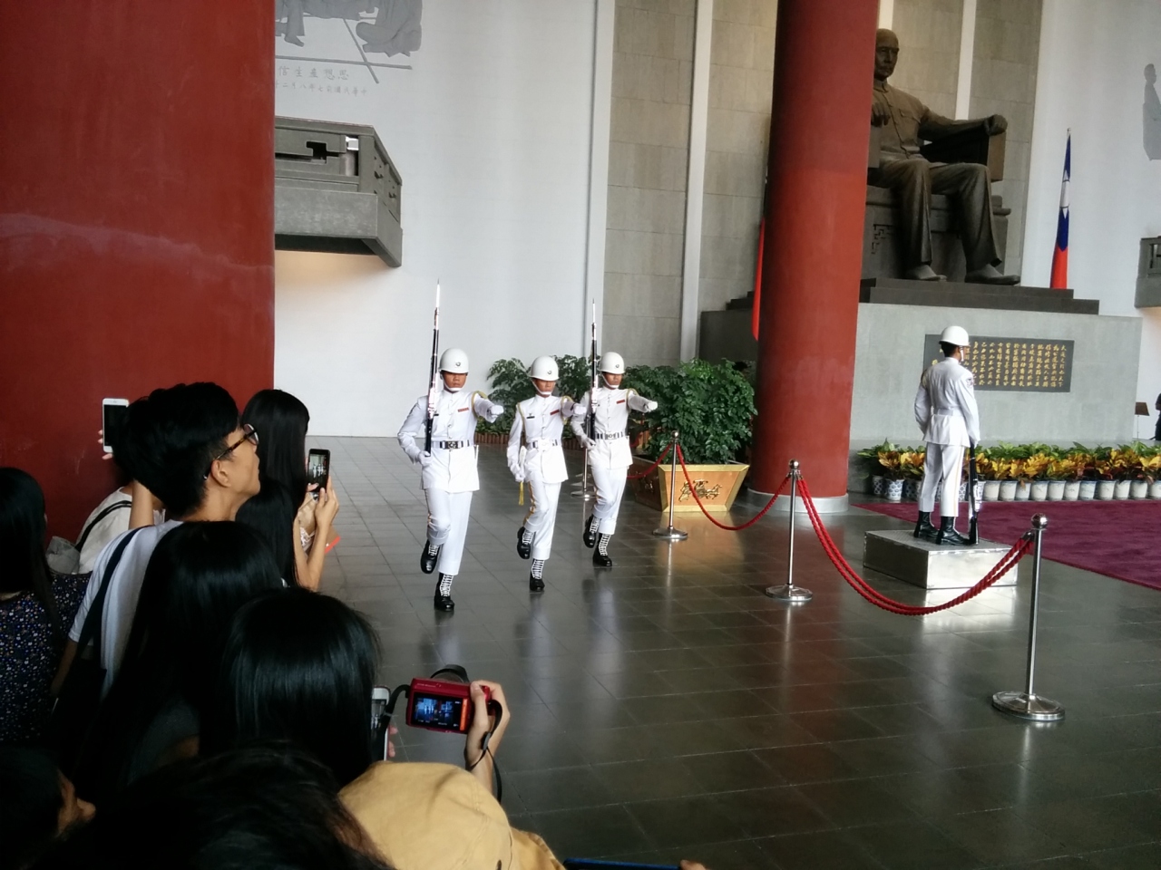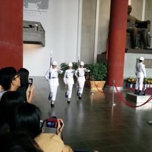 「国父紀念館」の本堂で孫文を守る衛兵の交代儀式が、毎日朝9時から17時まで、1時間に1度、00分の時に行われます。