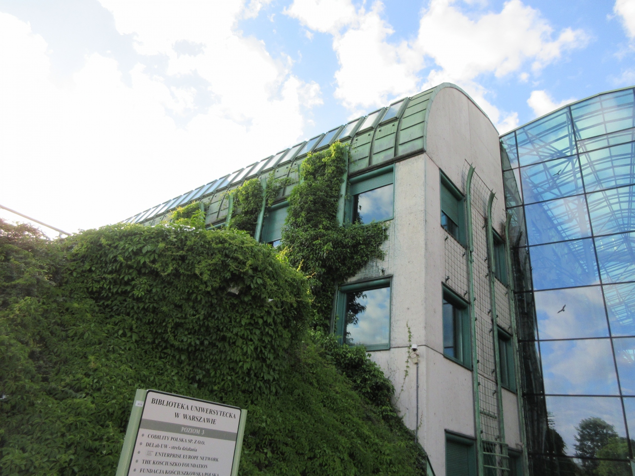 ワルシャワ大学から更に東、ビスワ川に近いところにあります。屋上が庭園になっているユニ−クな図書館で、緑と花であふれた屋上庭園は市民の憩いの場になっているということで、私が訪れたのは平日ですが、それでも何人かの地元の方と思しき人達がきていました。庭園も図書館も無料で入れます。