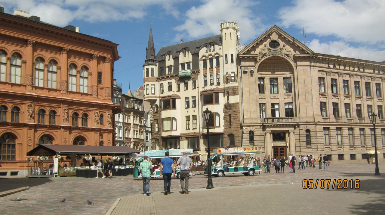 リーガ大聖堂の東側にあります。この広場は多くの通りが集まっています。その周りには大きな建物が囲っています。その中でもリーガ証券取引所の建物が目を引きます。またこの広場から北にのびるビルス通りは趣があります。