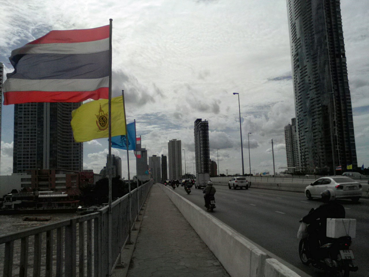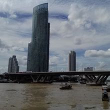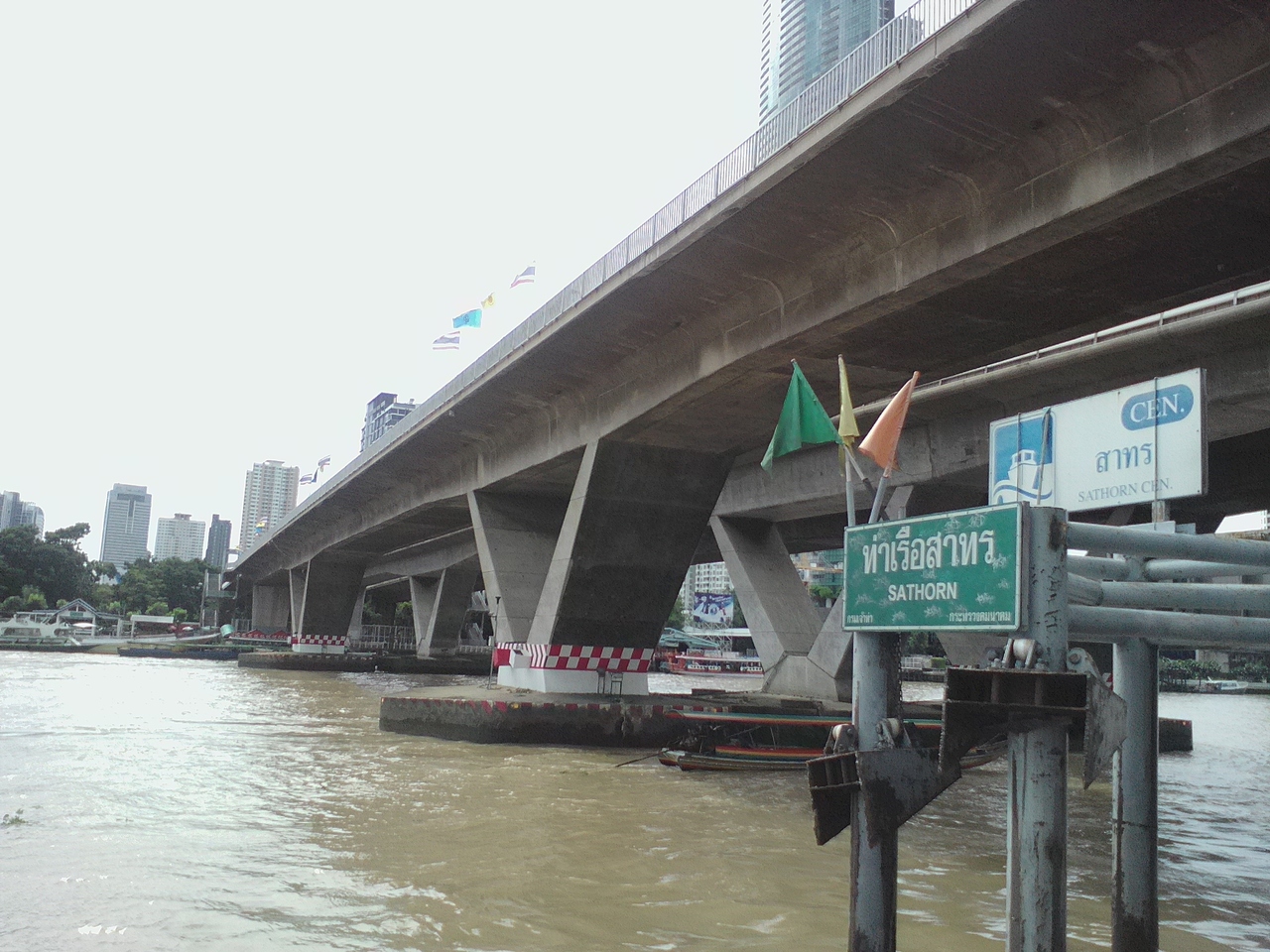 バンコク中心部、チャオプラヤー川にかかる橋はいくつかありますがその中でもこの橋は地味~な橋です。橋自体は特徴もなく美しくもない、取り立てて見るべきものではありません。しかし、バンコクオンリーワンがあります。それはBTSが走っていること。チャオプラヤー川、橋、BTSの3つがセットで見られるのはここだけ。このどれかにこだわりのある方には貴重なスポットと言えると思います。