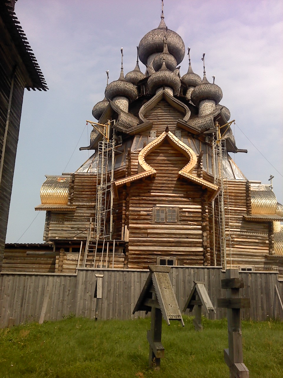 ペトロザヴォーツクまで行き、船でオネガ湖に浮かぶキジ島までいきました。