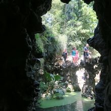 洞窟を抜けたり、飛び石を渡ったり、井戸の周りを歩けたり。