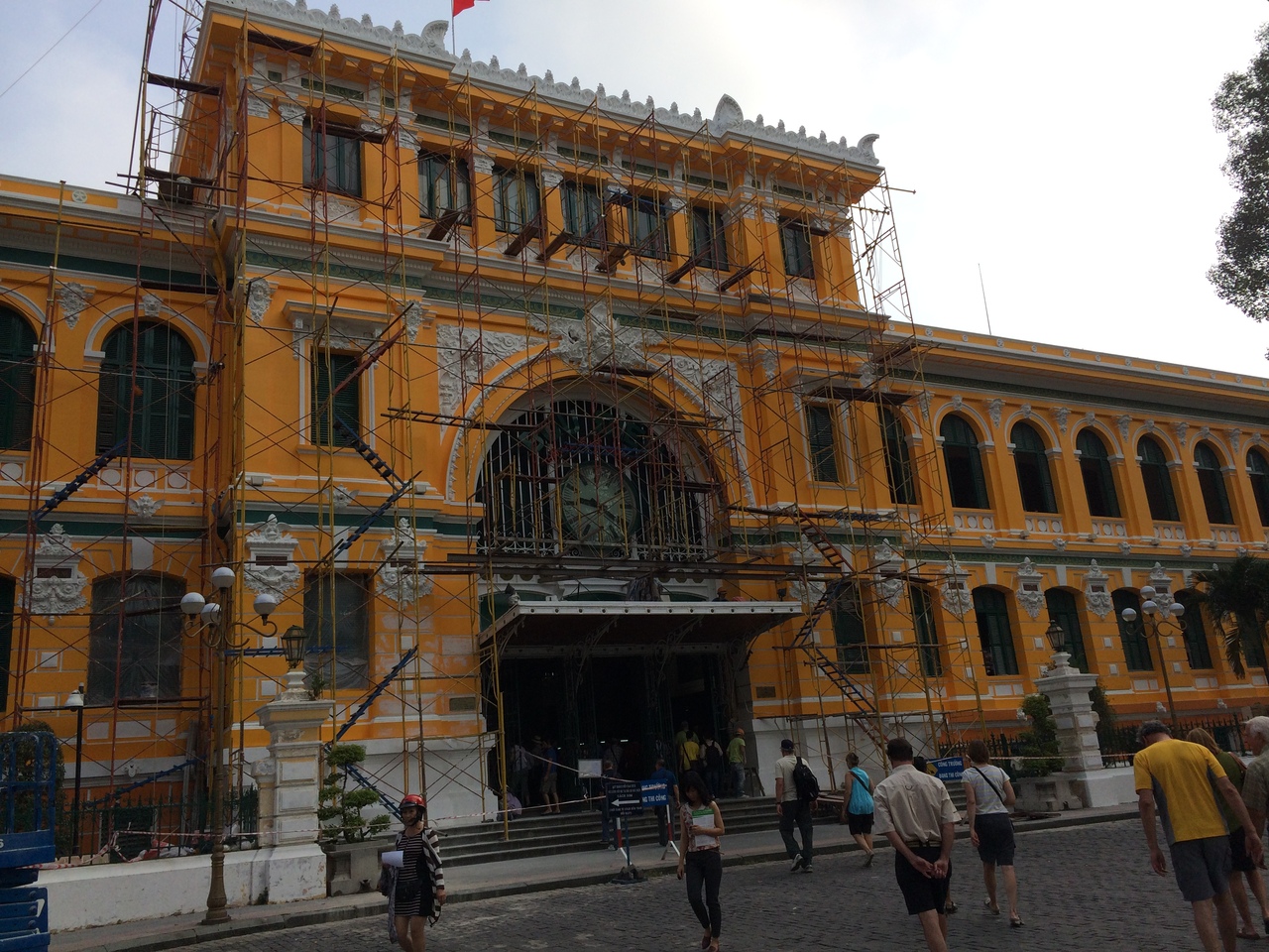 ホーチミンの目抜き通りであるドンコイ通りの入り口に建つ郵便局。綺麗な外観はもちろん内装もかつての様子を垣間見ることができます。現在も郵便局としての機能を果たしているとともに中にはお土産屋があり、ベトナムの小物などを売っています。