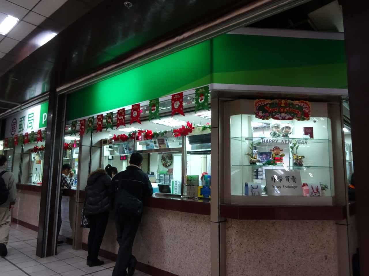 台北駅の1階(南一門近く)に郵便局があるのですが、そこで日本円から台湾元に両替をしてくれます。朝8時からやっているようです。番号札をとり、自分の番号が電光掲示板に出たらその窓口に並べばOKです。簡単な英語は通じましたし、すぐに両替してくれて助かりました。