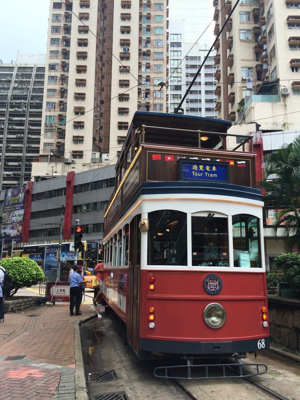 インターネットであらかじめ予約を入れ、バウチャーを持参します。上環駅からすぐ近くのトラム乗り場に停車しているレトロなトラムでのツアーです。数か国語対応の音声ガイドがついており、乗車時にイヤホンを受け取って好きな席に座ります。2階は一部オープントップですので、天気がよければそちらに乗車するのが楽しいと思います。風を感じて街の喧騒を体感するのはとても楽しかったです。乗車時にはトラムの2日間フリーパスももらえるので、ツアー後もトラムを気軽に楽しむことが可能です。