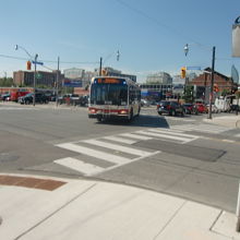 路面電車のストリートカーを利用しようと停留所で待っていたらバスが来ました。ストリートカーが廃止になってバスになったようでした。バスには番号が表示されているので、どこを走るのかは分かりました。降りる時は、黄色いヒモを引っ張ると停まってくれます。
