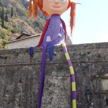 旧市街の北にある川の門です。出たところにシュクルダ川に架かる小さな橋があります。石垣に大きなマスコットが飾ってありました。駐車場が近くにあったように記憶しています。門をでる手前には、聖イヴァン要塞への登り口もありました。