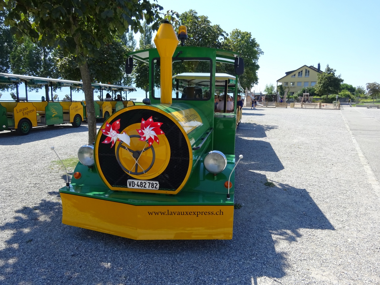 ワインを飲みながら回れる2時間のコースと、途中休憩があるだけの1時間のコースがあります。今回1時間のコースにして、可愛らしい列車型のバスに乗り込んで、ラヴォーの世界遺産のブドウ畑とレマン湖を眺めました。町並みも素敵で、斜面に広がるブドウ畑の緑とレマン湖の景色は素晴らしいです。途中休憩場所では小さなスタンドがあって、ワインをグラスで買って飲むことができます。