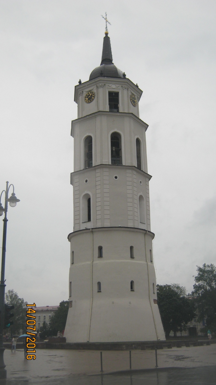 大聖堂のある広場の西に建てられています。この鐘楼はかつての城壁の塔を利用して改築されたものです。高さは53mとのことです。この塔は有料ですが公開されています。上ると町の景観を見ることができます。この塔にそってレンガ色の敷石があります。かつての城壁の位置です。