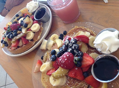 パンケーキは普通ですがフルーツがたっぷり乗っているのが嬉しいです。