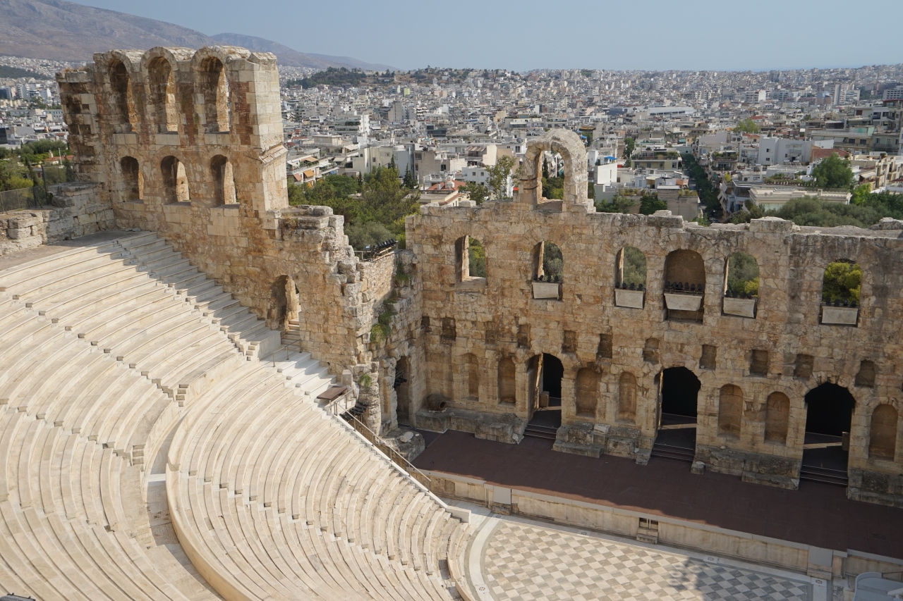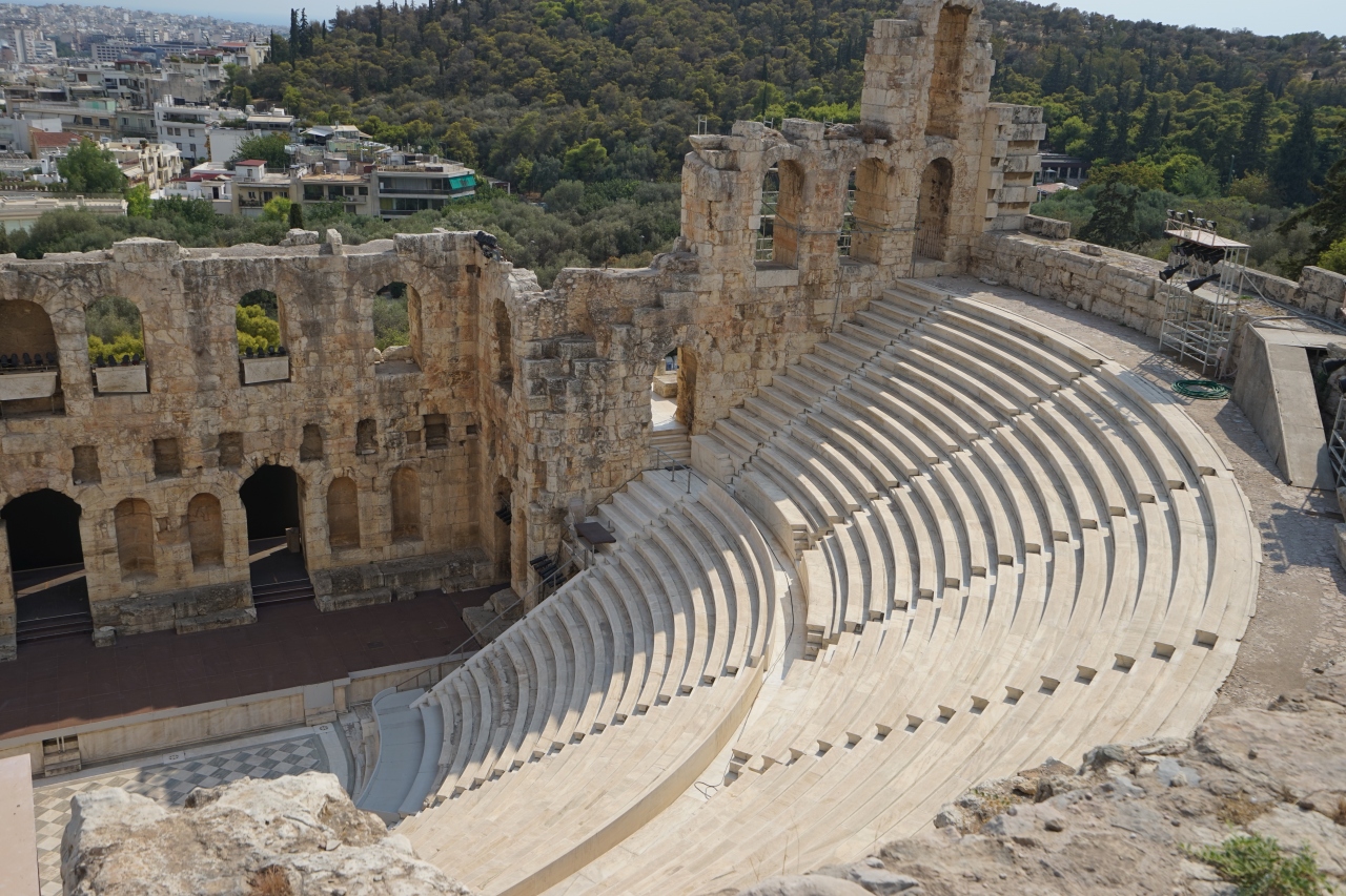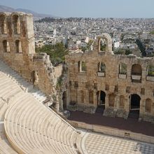 アクロポリスの丘を少し上ると右手下に見えてくるのが「イロド アティコス音楽堂」です。紀元161年にアテネの政治家で大富豪のイロド・アティコスが建設し、市民に寄贈した音楽堂ですが、現在も現役で利用されているそうです。