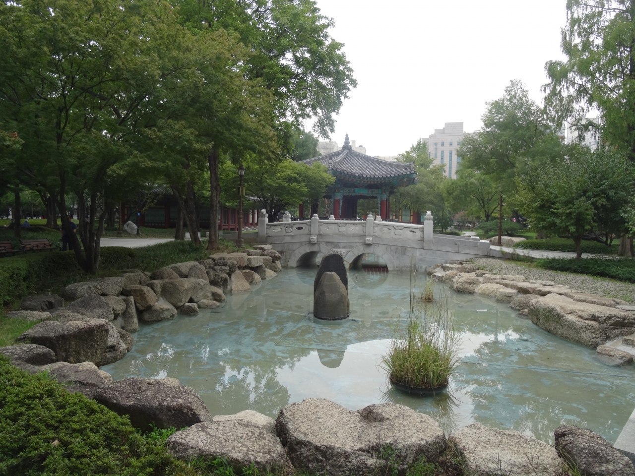大邱中心部にある公園。李朝時代に慶尚監営という役所があったところにあり、復元された監察府の正庁である宣化堂が見どころだが、中に入ったりはできず、外から眺めるだけ。