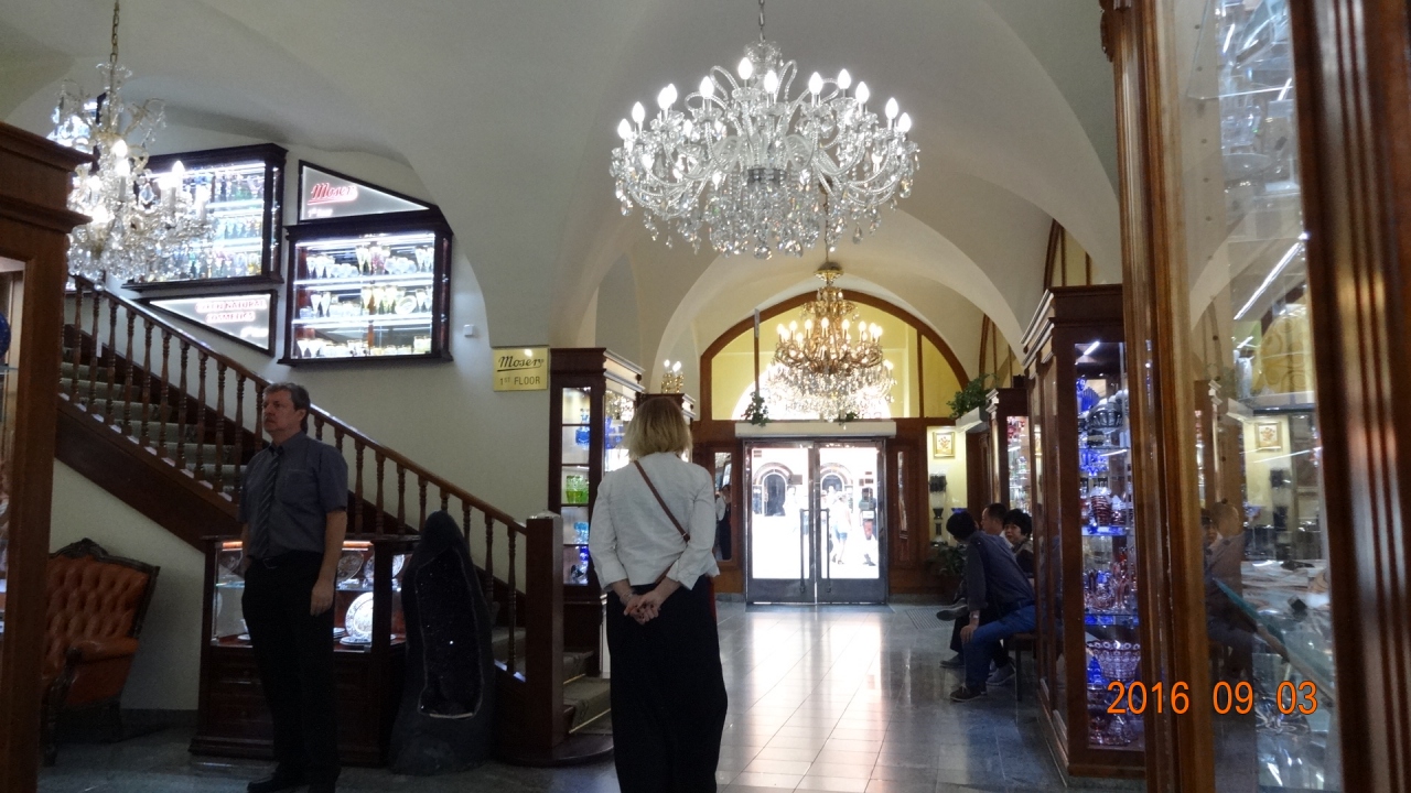 店内は広く、ボヘミアンガラスがたくさん置いてありました。