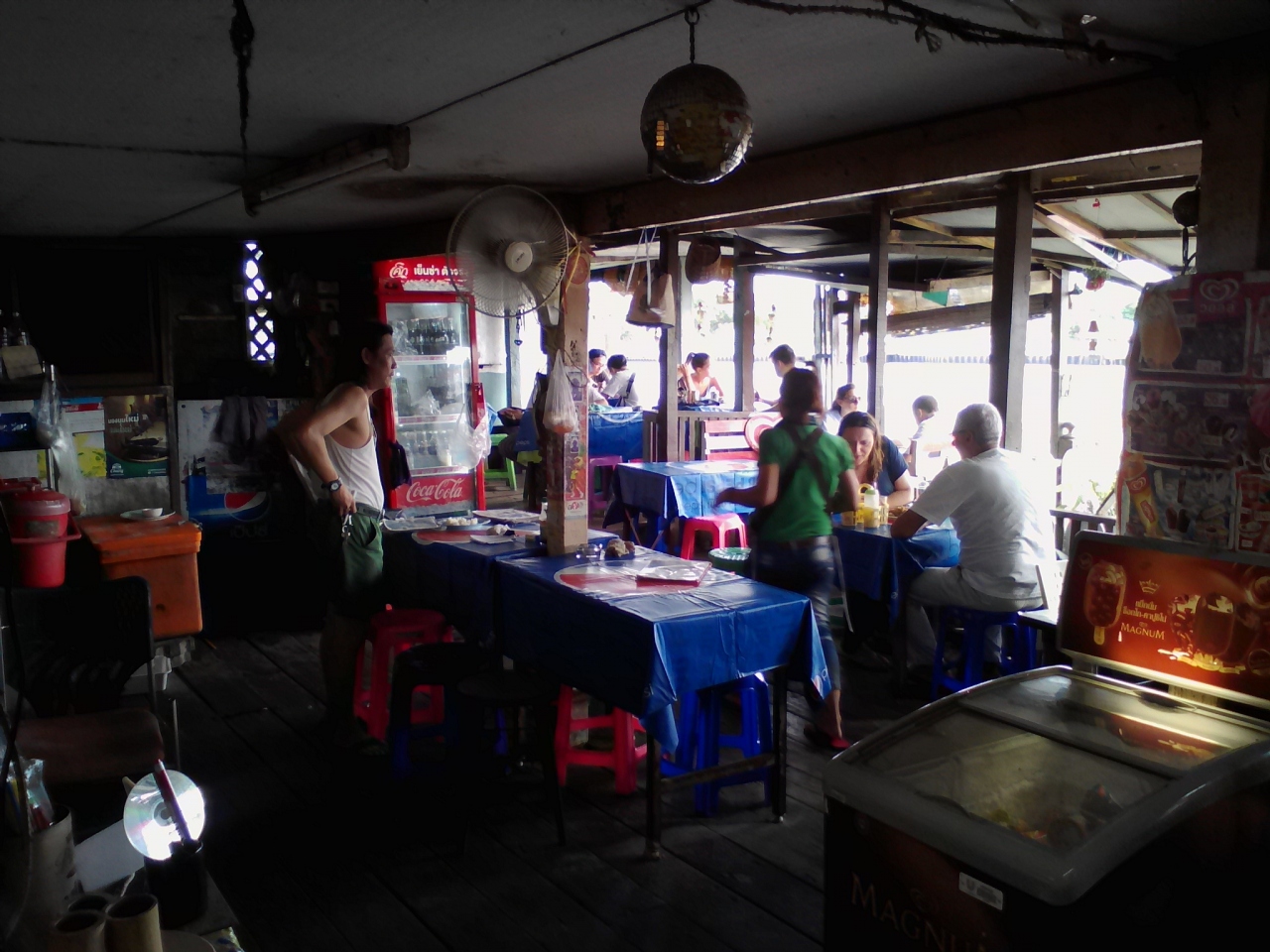 ワットポー最寄りの船着き場。ワットアルンへ行く際もここから渡し船に乗ります。建物は昔ながらの木造でとてもノスタルジック、いい味出しています。土産物屋が並んでいますがその一画、川沿いにレストランがあります。レストランと呼ぶには若干しょぼいですがチャオプラヤー川をゆく船を眺めながら食事ができ、いい雰囲気です。値段はちょっと高め、店員(おばちゃん)の態度もかなりいい加減ですが味はおいしかったです。