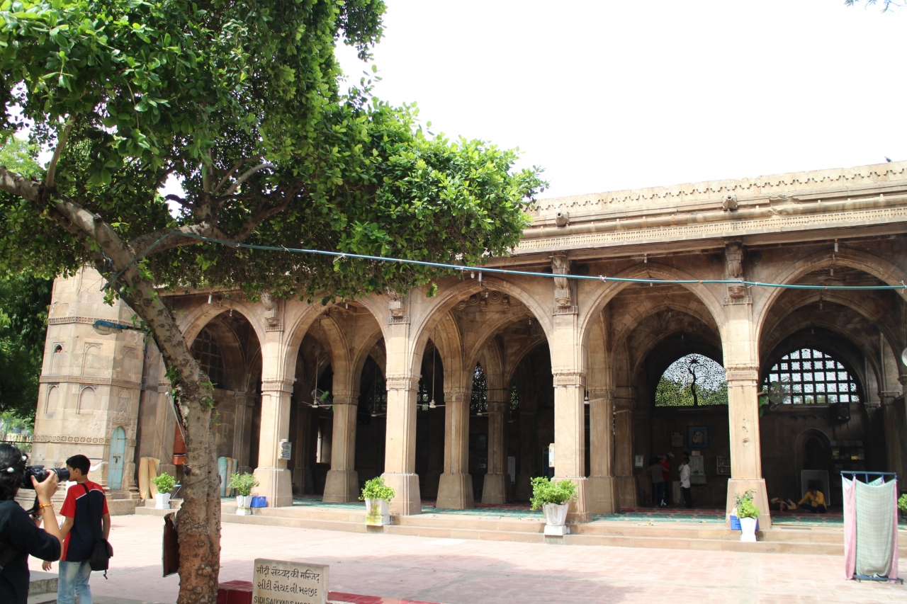 スィディ サイヤド モスクは、ネルー橋の東のロータリーにある。ネルー橋から5分くらい歩いたところのロータリーの中心にあります。1572~1573年に建造された歴史のある建物。ただ、ミナレットがないため地味な造りになっている。