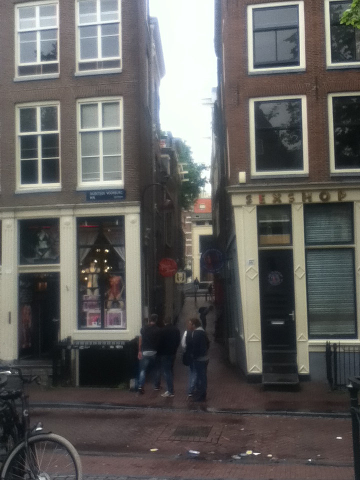 旧教会の南側、運河の西側の一角。昼間だと分かりにくいが、女性の下着のショップがあったり、それらしい看板が掛けられている建物もあるので凡そわかる。偶々ドアが開いてそれらしい女性の姿もちらっと見えた。男性観光客のグループも歩いていた。関心のある方は訪問するのもいいかもしれない。