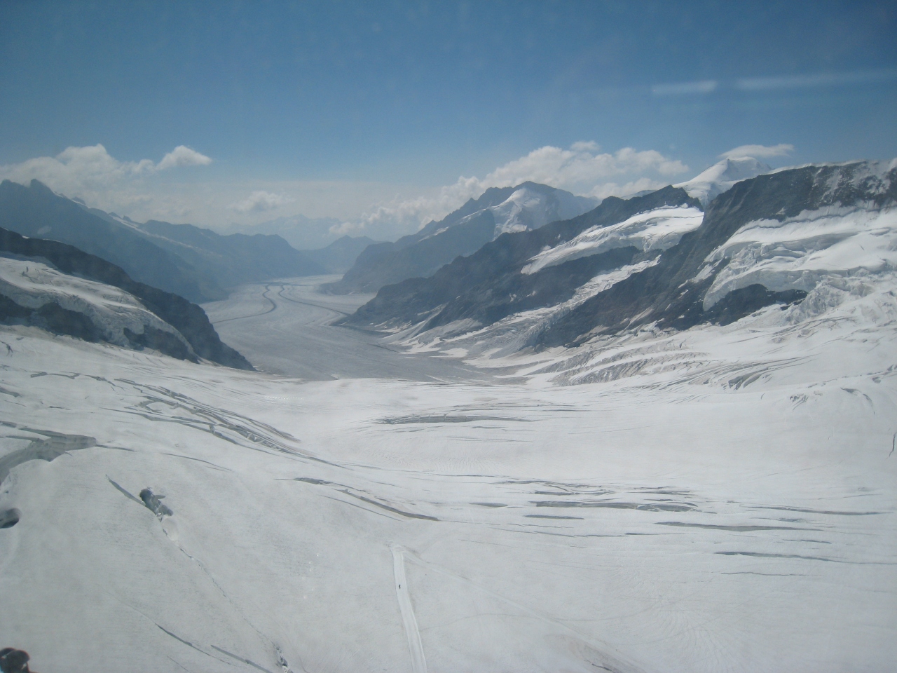 私のスイス旅行のハイライトは、これでした。ユングフラウヨッホ駅に隣接しているスフィンクス展望台から見下ろすアレッチ氷河(世界遺産)。まさに絶景でした。また、ユングフラウヨッホ周辺は、中国人・韓国人も多かったのですが、日本人割合が高いように感じました。