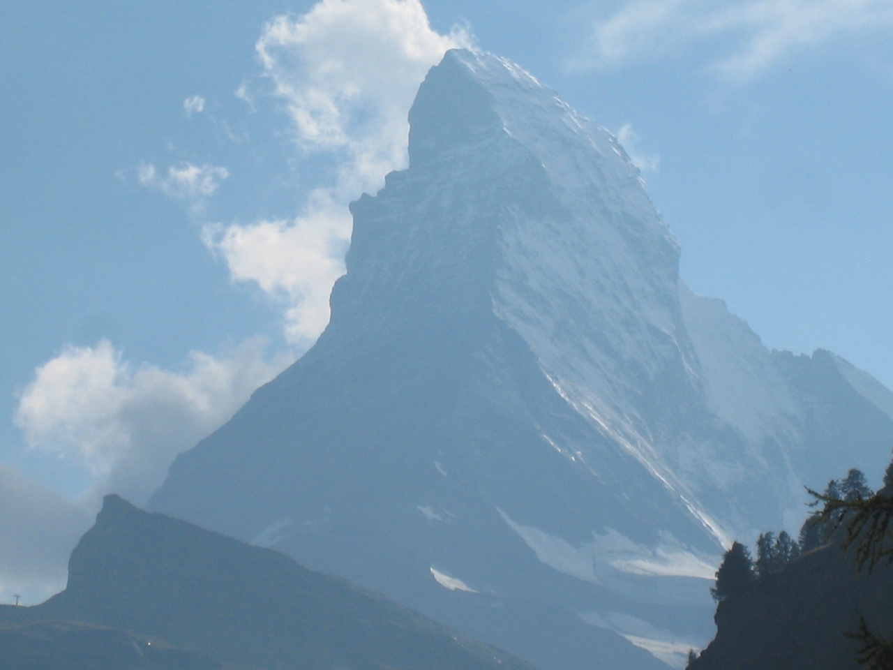 1日でベルン→ユングフラウヨッホと周って、この日の最後の観光スポットはマッターホルンでした。時間があれば、ツェルマット周辺の展望台に行きたかったのですが、時間がなく、ツェルマットの街中から見ました。しかし、予想以上に良く見れました。